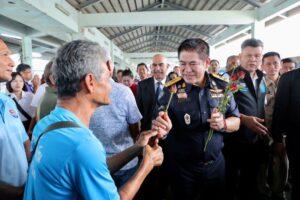 นอกจากนี้ รัฐมนตรีว่าการกระทรวงเกษตรและสหกรณ์ยังได้ร่วมประกอบพิธีบวงสรวงพลเรือเอกพระเจ้าบรมวงศ์เธอ พระองค์เจ้าอาภากรเกียรติวงศ์ กรมหลวงชุมพรเขตอุดมศักดิ์ เพื่อความเป็นสิริมงคลในการประกาศใช้มาตรการฯ และปล่อยเรือตรวจการออกปฏิบัติการจำนวน 13 ลำ ประกอบด้วย เรือตรวจประมงทะเล702, เรือตรวจประมงทะเล 619, เรือตรวจประมงทะเล 613, เรือตรวจประมงทะเล 611, เรือตรวจประมงทะเล 324, เรือตรวจประมงทะเล 220, เรือตรวจประมงทะเล 208, เรือตรวจประมงทะเล 113, เรือตรวจประมงทะเล 105, เรือศรชล.ภาค 2, เรือกรมทรัพยากรทางทะเลและชายฝั่ง, เรือตำรวจน้ำ และเรือตรวจคนเข้าเมือง มอบแผ่นป้ายเงินอุดหนุนโครงการพัฒนาอาชีพและส่งเสริมความเข้มแข็งของชุมชนประมง (กิจกรรมพัฒนาอาชีพชุมชนประมง) ประจำปี 2567 ให้แก่ประธานองค์กรชุมชนประมงท้องถิ่น 9 ชุมชนในเขตจังหวัดชุมพร สุราษฎร์ธานี และประจวบคีรีขันธ์ มอบหนังสือรับรองเพื่อประกอบการยื่นขอจดทะเบียนเรือไทย สำหรับเรือประมงพื้นบ้าน 7 ราย