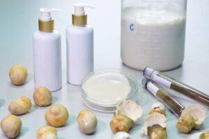 นางสาวสุรีย์รัตน์ กล่าวต่อไปว่า เนื่องจากผิวหนังของมนุษย์มีโปรตีนเป็นองค์ประกอบ ในระหว่างวันจะมีการสูญเสียโปรตีนจากการเสื่อมสภาพของเซลล์ รังสียูวี และมลภาวะ สามารถซ่อมแซมผิวเนื่องจากการสูญเสียโปรตีนด้วยการใช้ผลิตภัณฑ์เครื่องสำอางที่มีส่วนผสมของโปรตีนไฮโดรไลเซท โดยเฉพาะเห็ดฟางเมื่อนำมาทำเป็นโปรตีนโฮโดรไลเชท จะมีคุณสมบัติในการทดแทนโปรตีนที่สูญเสียไประหว่างวัน โดยจะจับตัวกับน้ำและผิวจึงยึดเกาะกับน้ำและผิวหน้าได้โดยตรง และสามารถซ่อมแซมส่วนที่สึกหรอได้ ทำให้ผิวมีความชุ่มชื้น เรียบเนียน เพิ่มความยืดหยุ่น ยกกระชับผิว โปรตีนไฮโดรไลเซทจากเห็ดฟางจึงมีประสิทธิภาพในการดูแลผิวพรรณครบถ้วน ทำให้เห็ดฟางเป็นทางเลือกที่น่าสนใจ สำหรับเกษตรกรในการพัฒนาและเพิ่มมูลค่าให้กับผลิตภัณฑ์ ผู้ที่สนใจสามารถติดต่อสอบถามข้อมมูลเพิ่มเติมได้ที่ กลุ่มวิจัยและพัฒนาการแปรรูปผลิตผลเกษตร กรมวิชาการเกษตร โทรศัพท์ 0-2940-5468-9