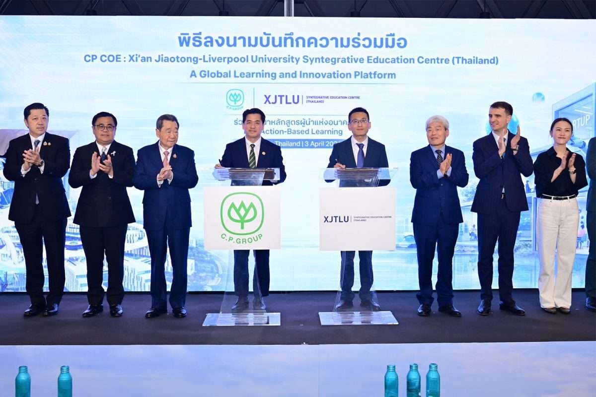 โดยต่อยอดจากวิสัยทัศน์ของ นายธนินท์ เจียรวนนท์ ประธานอาวุโส เครือเจริญโภคภัณฑ์ ที่ให้ความสำคัญกับ “การพัฒนาคน” ในฐานะรากฐานของความสามารถในการแข่งขันของประเทศ และ นายศุภชัย เจียรวนนท์ ผู้ริเริ่มและก่อตั้ง CP Center of Excellence (CP COE) เพื่อยกระดับเครือเจริญโภคภัณฑ์สู่การเป็น Tech-Driven Company และเชื่อมองค์ความรู้ เทคโนโลยี และธุรกิจเข้าด้วยกันในระดับสากล สอดคล้องกับแนวคิดของผู้นำการศึกษาระดับโลก Professor Youmin Xi อธิการบดีบริหาร แห่ง XJTLU ที่ชี้ว่าโลกกำลังก้าวสู่ยุคที่ AI และดิจิทัลกำลังเปลี่ยนโฉมการศึกษา การเรียนในยุคปัจจุบัน ควรเป็นรูปแบบการลงมือทำจริง จากโจทย์จริงของภาคธุรกิจและอุตสาหกรรม โดยได้จัดมีพิธีลงนามความร่วมมืออย่างใหญ่ขึ้นที่ห้องประชุม Auditorium อาคารทรู ทาวเวอร์ ถนนรัชดาภิเษก